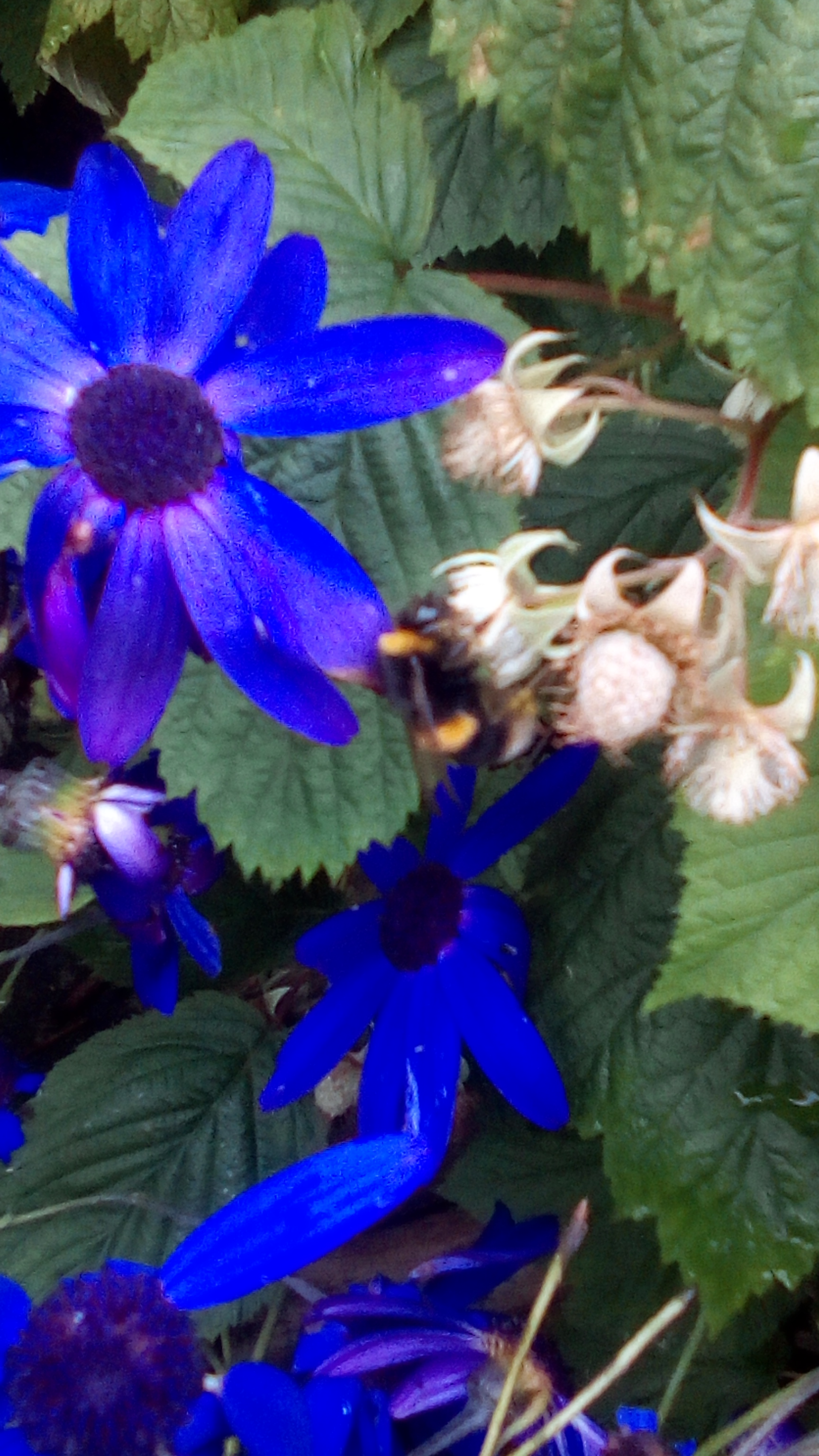 I’ve been looking at my small garden to see what worked and what didn’t work this year. Like many people in lockdown, I sowed a lot of seeds. Many of them grew into plants, which was heartening to see. It’s nice to see effort rewarded. The weather was amazing, for Ireland. It was warm, dry and sunny. We were so lucky that it was like that during lockdown, because at least it was possible to get out into the fresh air, either in the garden, the park or the beach. Then, for the last six weeks, the weather has been pretty dismal. The normal Irish summer – rain, grey and overcast. And wind. The wind decimated the plants. What the wind didn’t kill, the slugs did. It was disheartening. However, I looked at the garden again this week during the occasional sunny spot between the rain. The seeds I intended as food to eat mostly didn’t work out. The raspberries fruited, not quite as abundant as in previous years when the weather suited them better, but still. Very welcome indeed. What did work very well was the food for the bees. The bees are hoovering up the nectar from the bee motel tree, the purple geranium, the campanula that went wild, and the lemon balm that went crazy. They love the alliums I threw in a pot outside the front door last autumn. They like the nepeta and the butterfly bush. I am already investigating how to do things differently and better next year on the anti-wind and no-kill anti-slug front. So all is not lost. The food for the human body didn’t quite work out but instead there is an abundance of food for the soul. I sit beside the purple geranium, meditating, to the sound of the little solar fountain, and the sound of happy bees. Blessings. 🙂