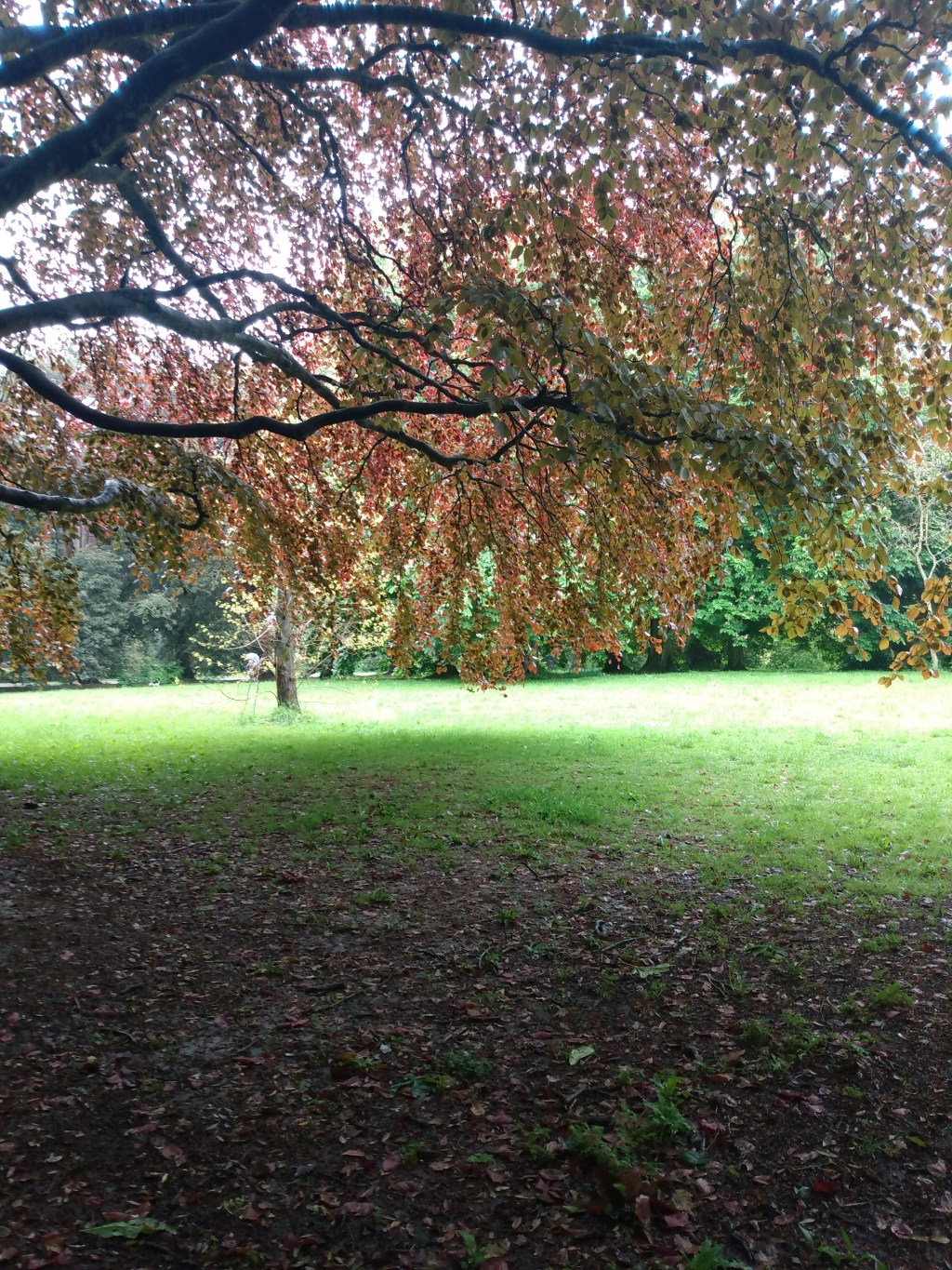 I turned a corner in the park and was stopped in my tracks by the beauty of a copper beech tree. The light filtered through the leaves and it made the space underneath magic. I said Wow! Then I came across another group of chestnut trees whose leaves were an intense green, set against another copper beech. Being a wordsmith, I said Wow! again. On such a low-light rainy day I didn’t expect to be presented with the healing gift of beauty in a park close to home. If we open our eyes, the natural world can fill us up, bring a smile on a dismal day and balm to the soul. Blessings.